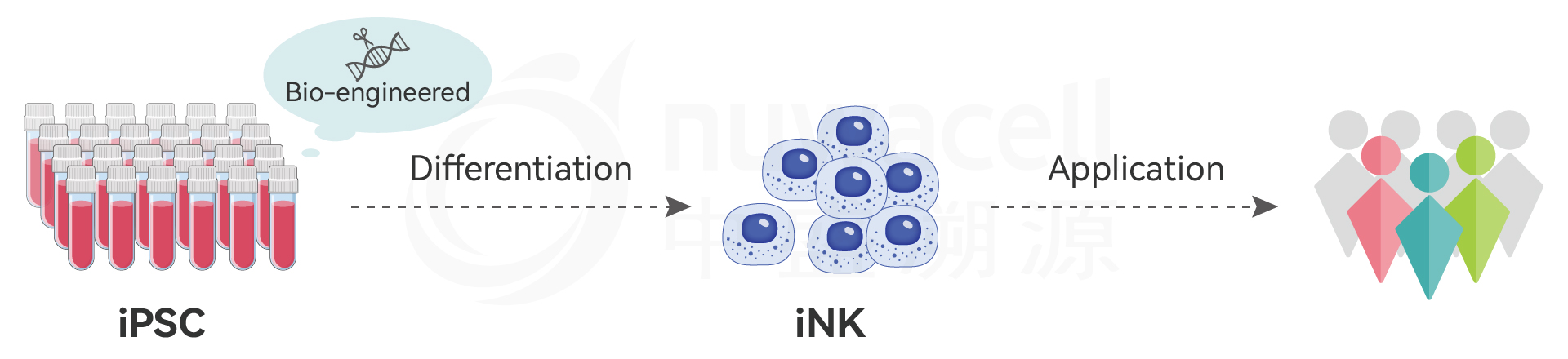 iPSC-NK products have the advantages of large batch output, stable quality, superior tumor killing performance, resistance to cryopreservation and recovery, and easy multi-element gene modification.